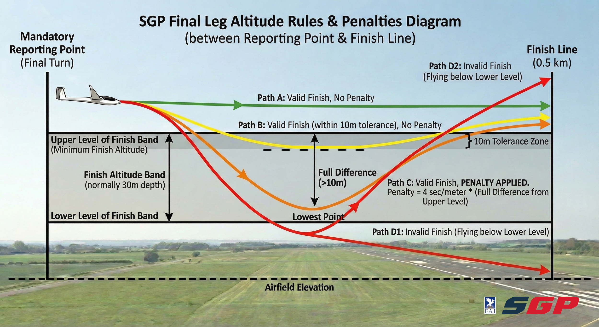 In the Band: Flying below the upper limit of the band incurs a time penalty, but there is now a 10m Tolerance Zone.